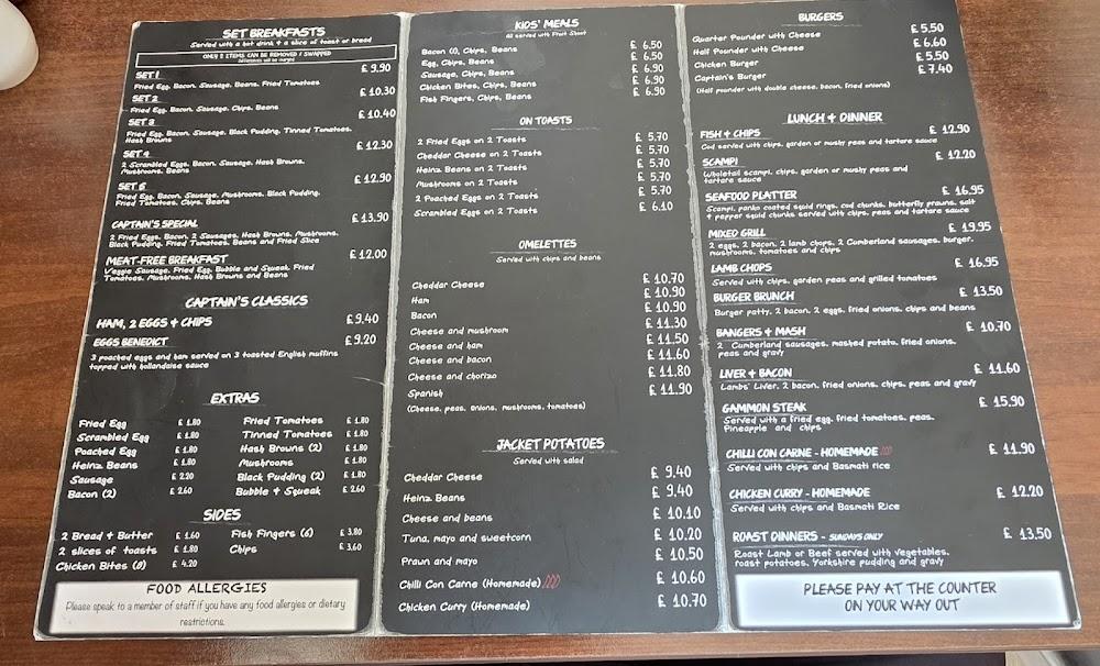 Located on The Stade in Folkestone, The Captain's Table Cafe enjoys a prime spot with beautiful views of the harbour. This area buzzes with activity, especially during the weekends when tourists explore the vibrant coastline. The cafe’s casual and cosy setup welcomes various patrons, including families, friends, and solo adventurers. Inside, the decor blends charm and simplicity, creating a balanced atmosphere that invites relaxation over a good meal. Accessibility features, such as wheelchair access to both seating areas and restrooms, ensure everyone can enjoy what the cafe offers.